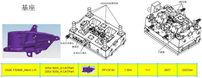 對于汽車后視鏡支架模具,設(shè)計時要注意: