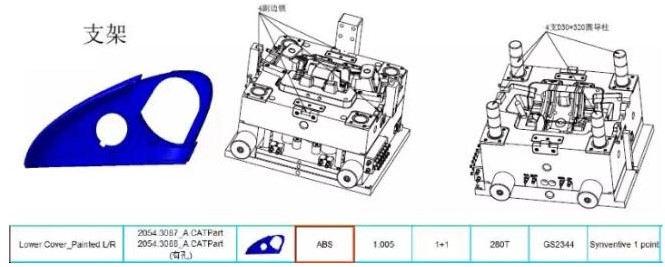 模具結(jié)構(gòu):鏡圈產(chǎn)品一般無結(jié)構(gòu),此車型鏡圈產(chǎn)品無行位斜頂結(jié)構(gòu)